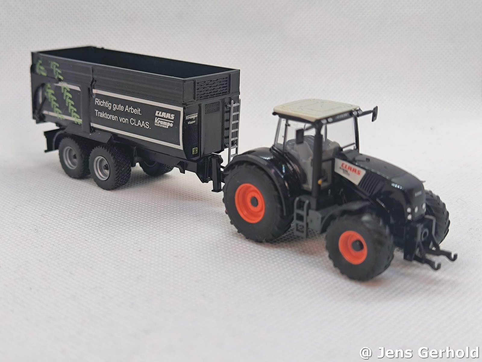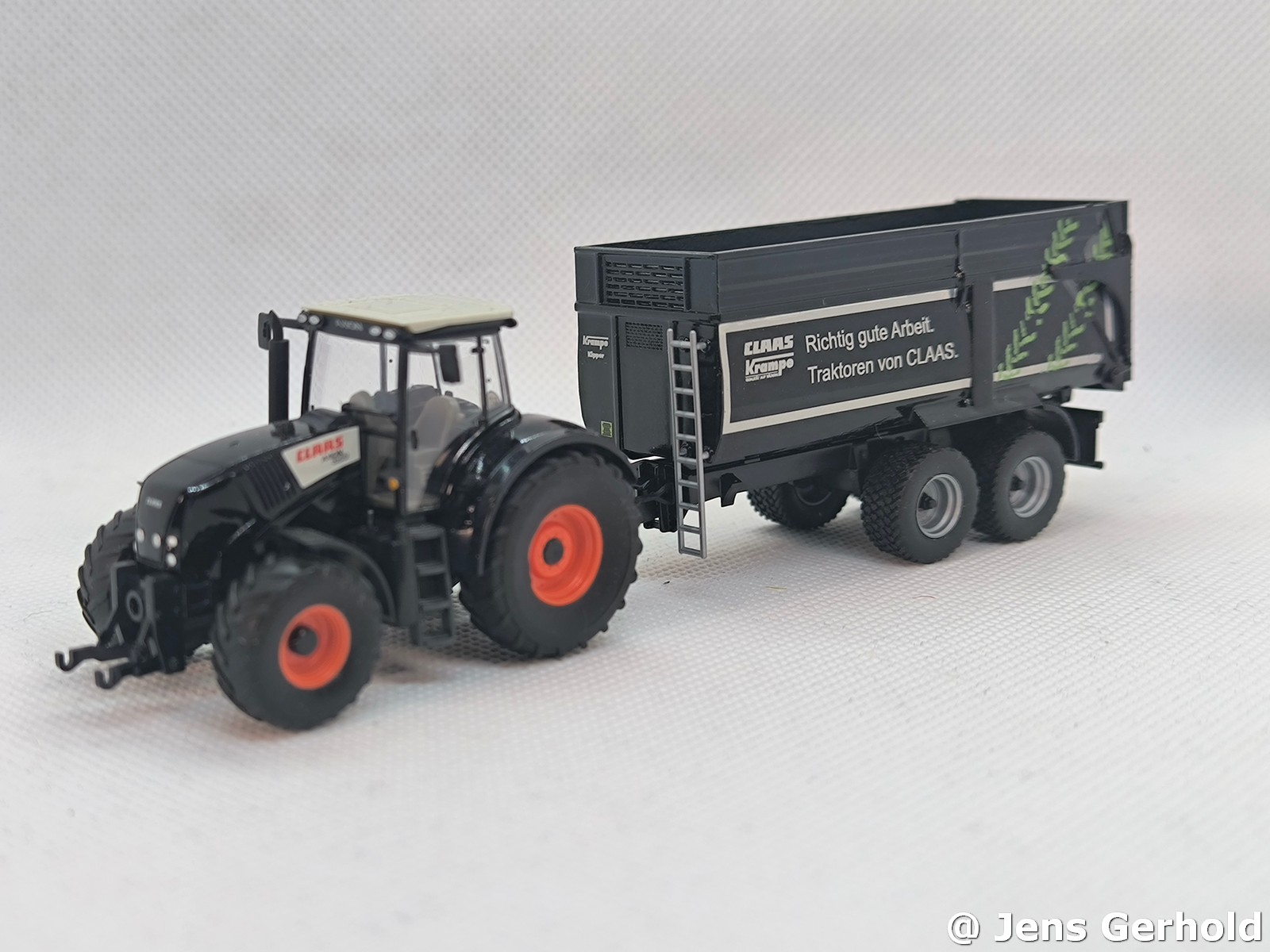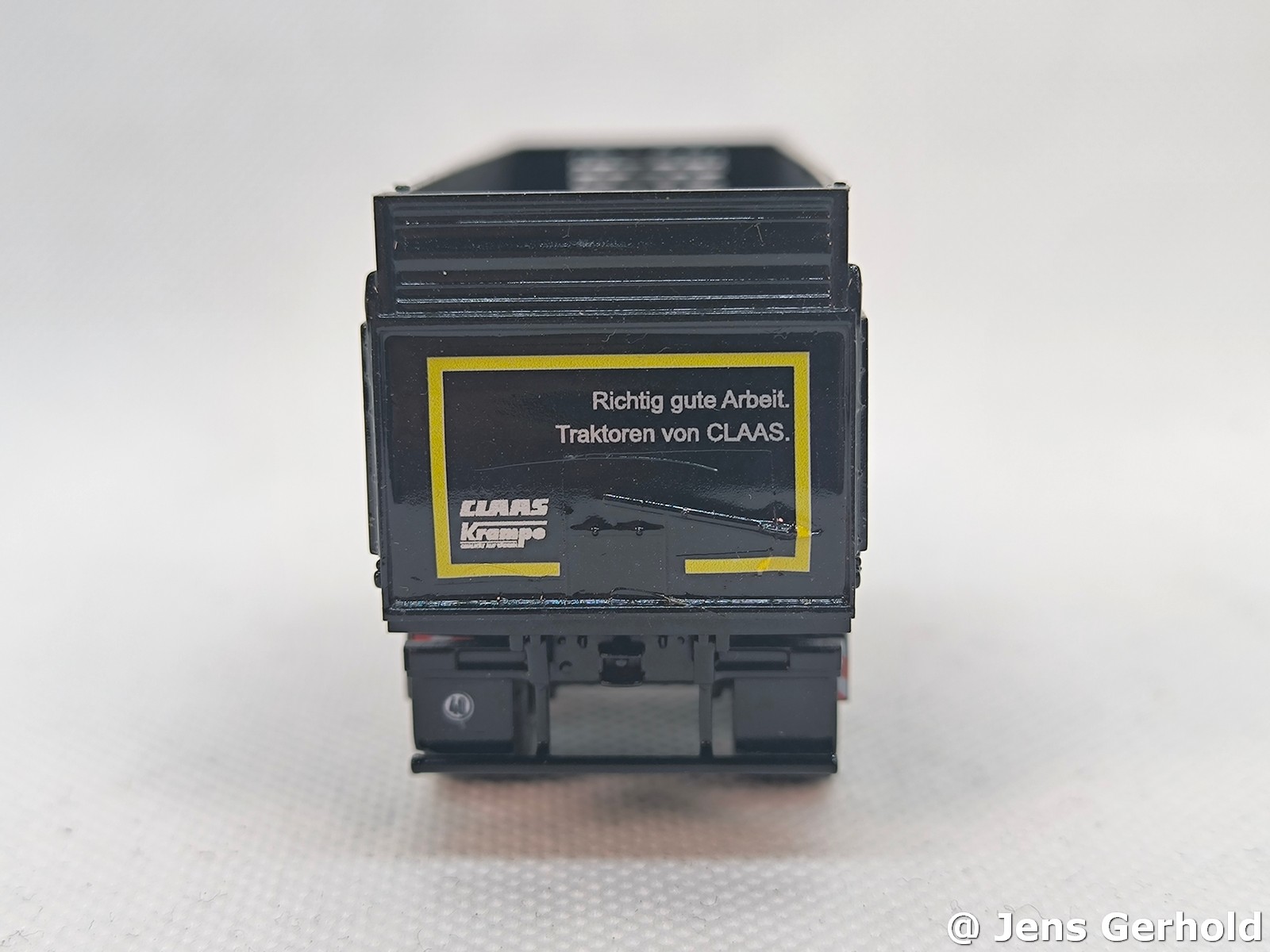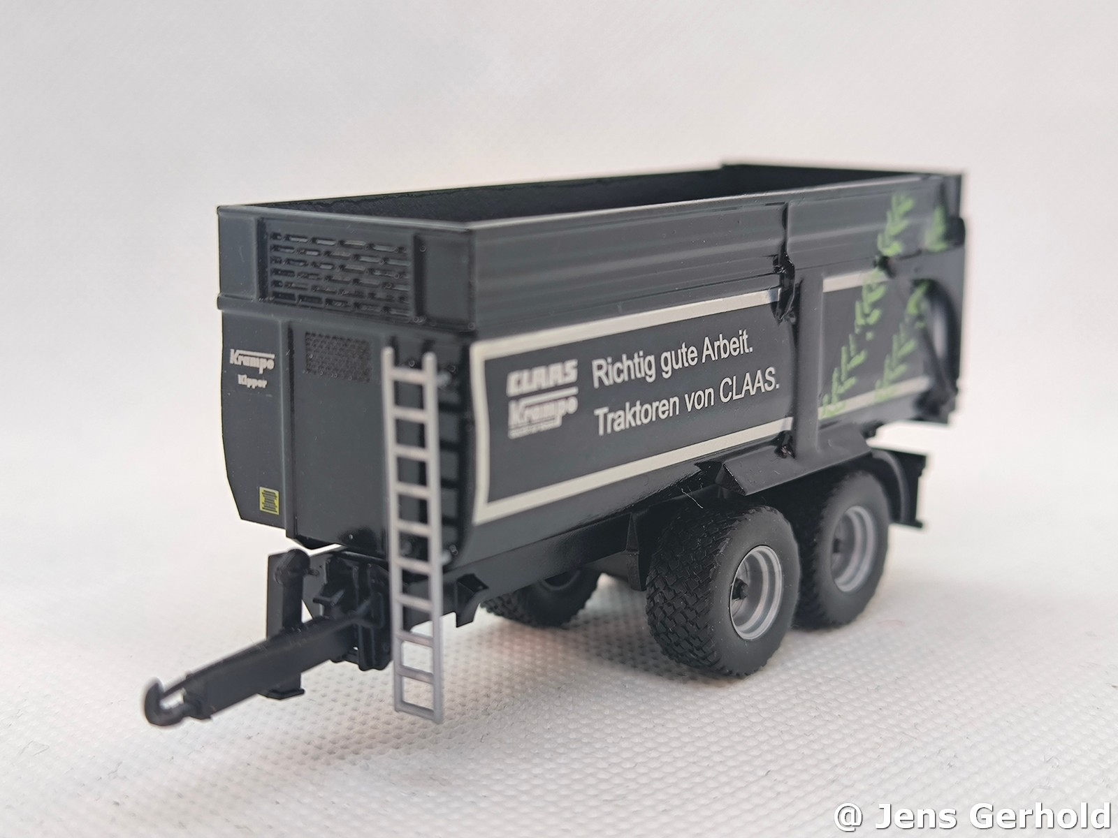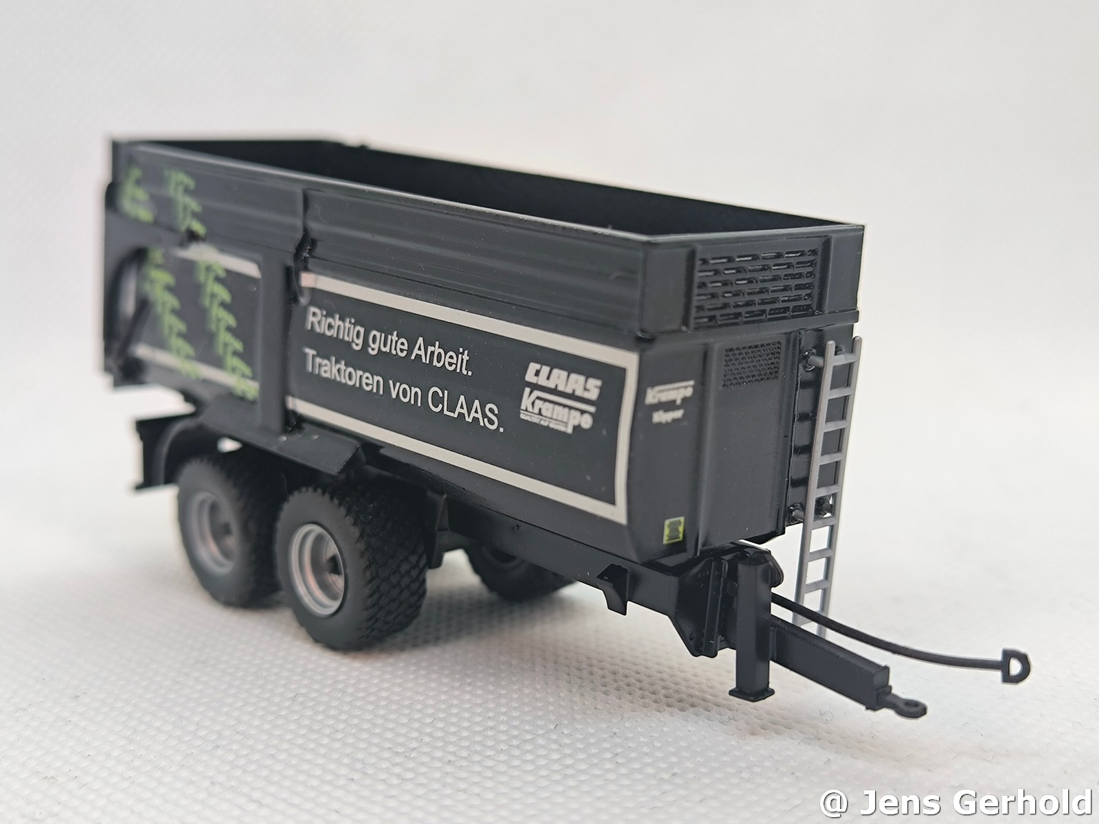 Das Grundmodel ist der Krampe von Herpa. Der Krampe - BigBody wurde von einem Modellbaukollegen gebaut und mit Claas Decals versehen